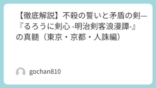 歴史 【徹底解説】不殺の誓いと矛盾の剣—『るろうに剣心 -明治剣客浪漫譚-』の真髄(東京・京都・人誅編) 「不殺の誓い」とは何か?『るろうに剣心』のあらすじと魅力を徹底紹介。宿敵・志々雄真実との激闘から、雪代巴との悲劇的な過去が明かされる人誅編まで。矛盾を抱えた剣心が辿り着いた「答え」と、名勝負の数々を振り返ります。 2025.12.14 バトル歴史漫画