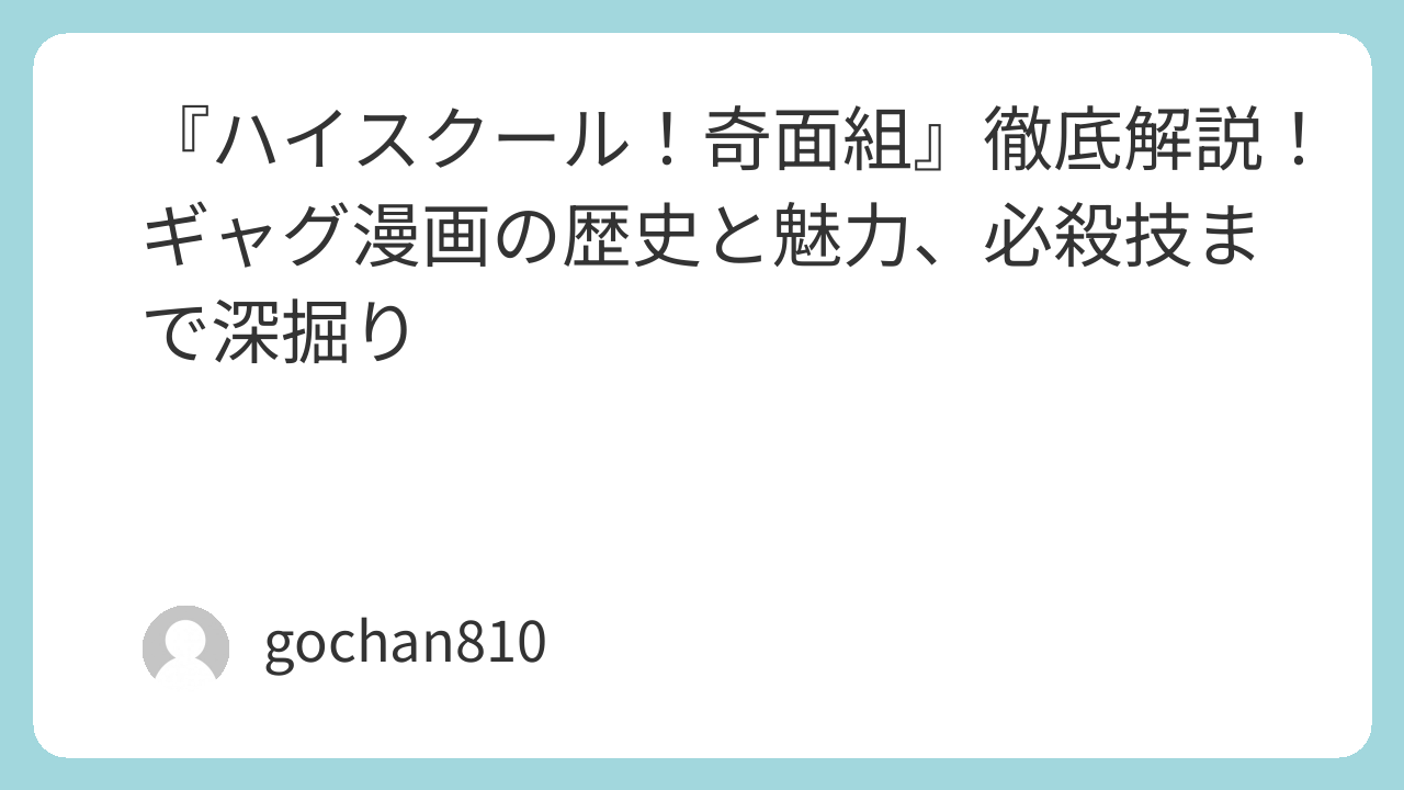 新沢基栄先生による不朽のギャグ・コメディ漫画『ハイスクール!奇面組』は、そのユニークなキャラクターと抱腹絶倒のギャグで、多くの読者を魅了してきました。今回は、この作品の概要から歴史、そして登場人物たちの魅力まで、深掘りしてご紹介します!