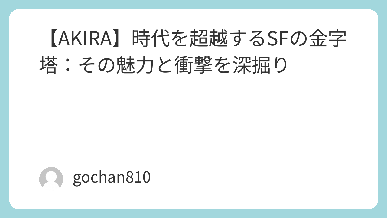 いかがでしたでしょうか? 『AKIRA』がなぜこれほどまでに多くの人々に影響を与え続けているのか、その一端を感じていただけたなら幸いです。まだ読んだことがない方はぜひ、この不朽の名作の世界に飛び込んでみてください!