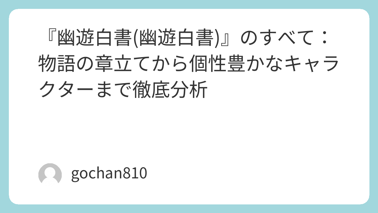 まだ読んだことがない方も、昔読んでいた方も、ぜひこの機会に『幽☆遊☆白書』の世界に触れてみてください。きっと、あなたのお気に入りのキャラクターが見つかるはずです!