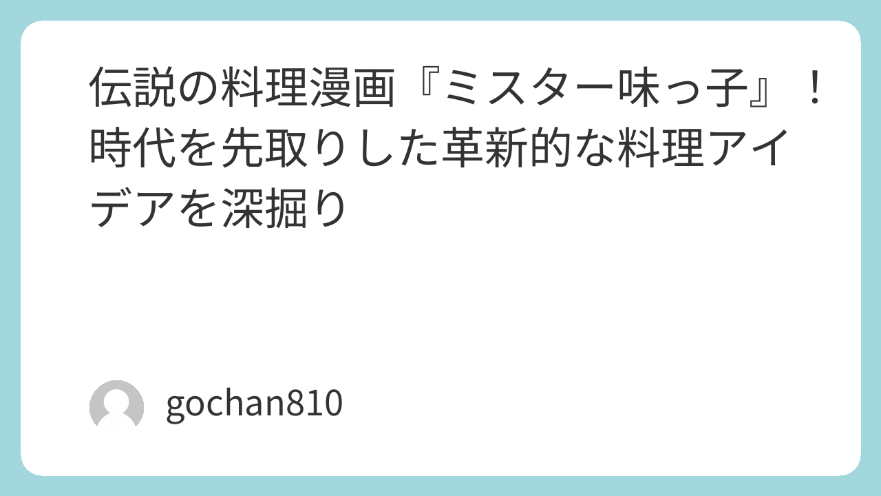『ミスター味っ子』は、2003年より味吉陽一の息子・味吉陽太を主人公とした続編『ミスター味っ子II』が、2015年からは中学生の陽一が幕末へタイムスリップする『ミスター味っ子 幕末編』が連載されており、その世界観は今も広がりを見せています。 『ミスター味っ子』は、そのリアクション描写によって、後の『焼きたて!!ジャぱん』や『食戟のソーマ』といった料理アニメ・漫画に多大な影響を与えた「料理アニメの原点」とも言える作品です。漫画版自体も、現実的ながらも斬新な料理アイデアを多数提示し、読者の食文化や料理への興味を喚起した点で、日本の漫画史において重要な位置を占めています。