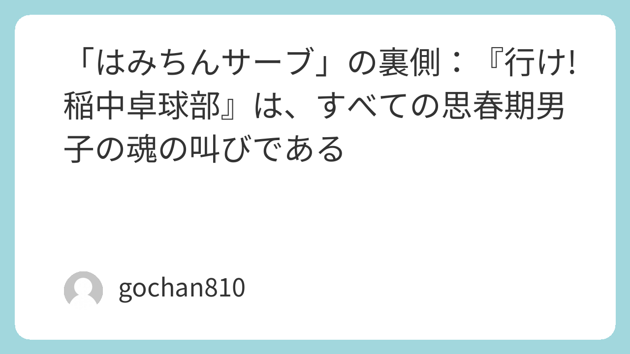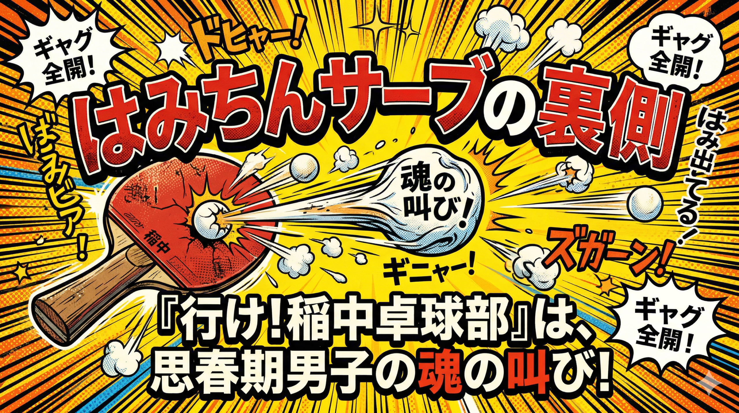 稲豊中学校の卓球部は、一見まともな部長・竹田と副部長・木之下という「県内屈指の実力者」を擁しながら、物語の駆動輪となるのは、主人公の前野、井沢、そして田中の3人です。彼らは「初心者並みの実力」しかなく、まじめな練習の代わりに「はみちんサーブ」や「おてもとサーブ」といったふざけた技の研究に情熱を費やします。