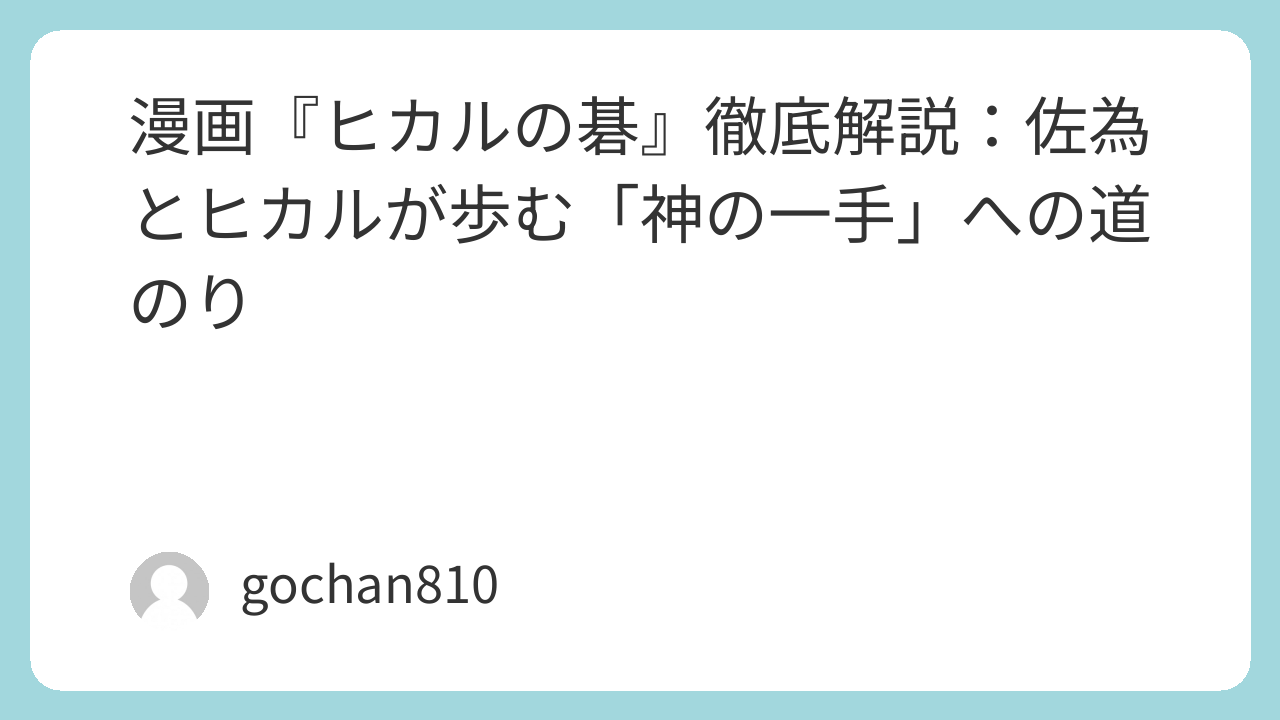 漫画『ヒカルの碁』:天才の霊と少年が歩む「神の一手」への道
