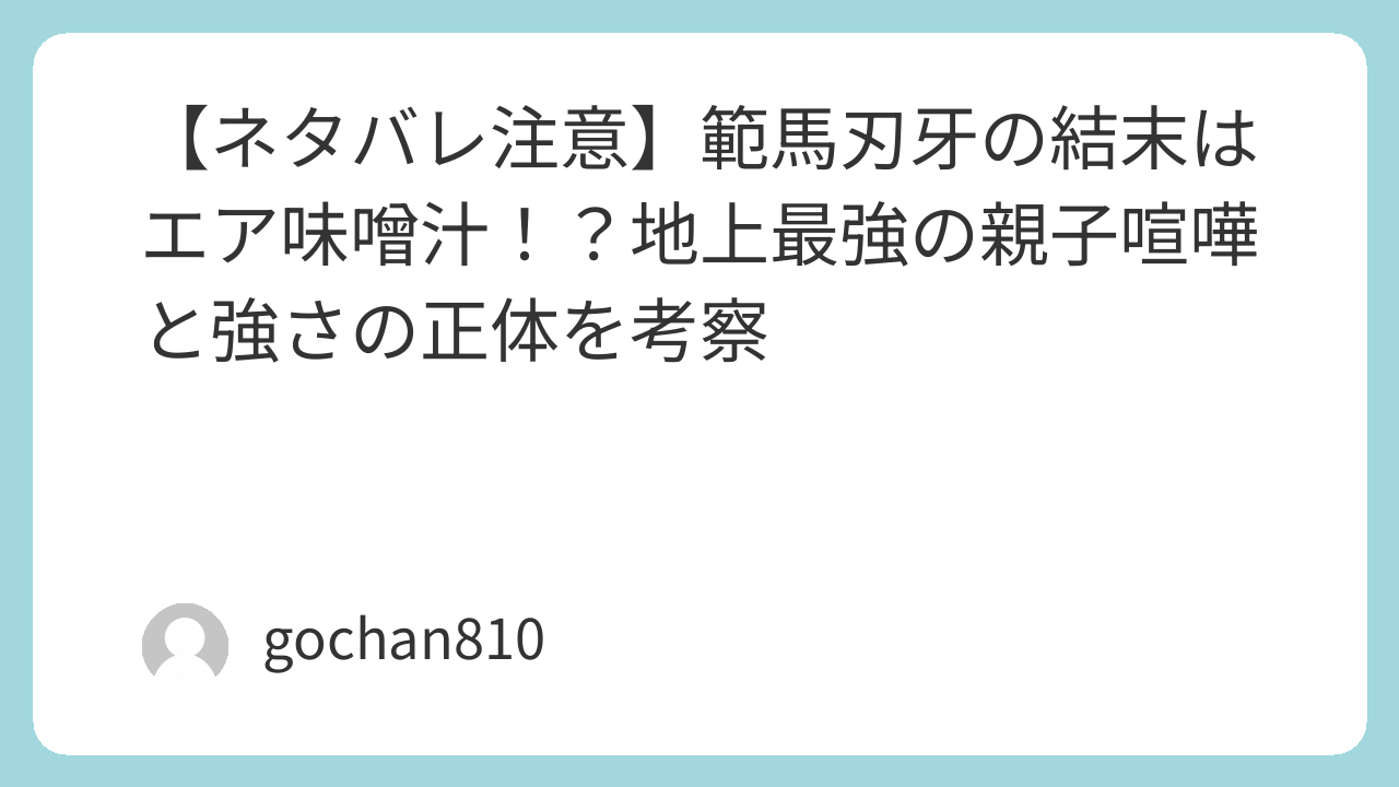 結果、**「地上最強の座を譲った父」と「それを受け取らなかった息子」**という、奇妙かつ感動的な和解エンドを迎えました。これは「腕力で勝つこと」よりも「自分の意志(ワガママ)を相手に通すこと」こそが真の強さであるという、板垣恵介先生の強烈な哲学の提示でした。