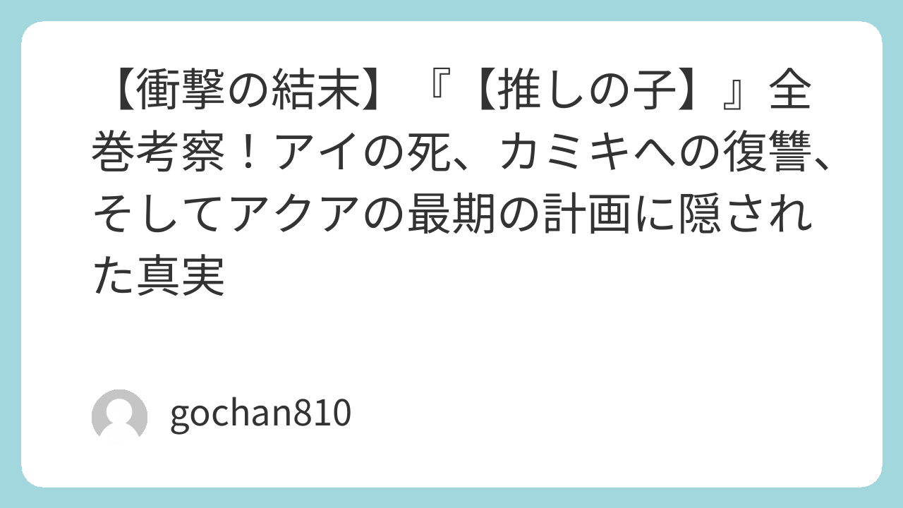 多くの読者が衝撃を受けた、アクアの自己犠牲による結末。なぜ彼は死ななければならなかったのか。その真相は、あまりにも残酷で、そして深い愛に満ちていました。