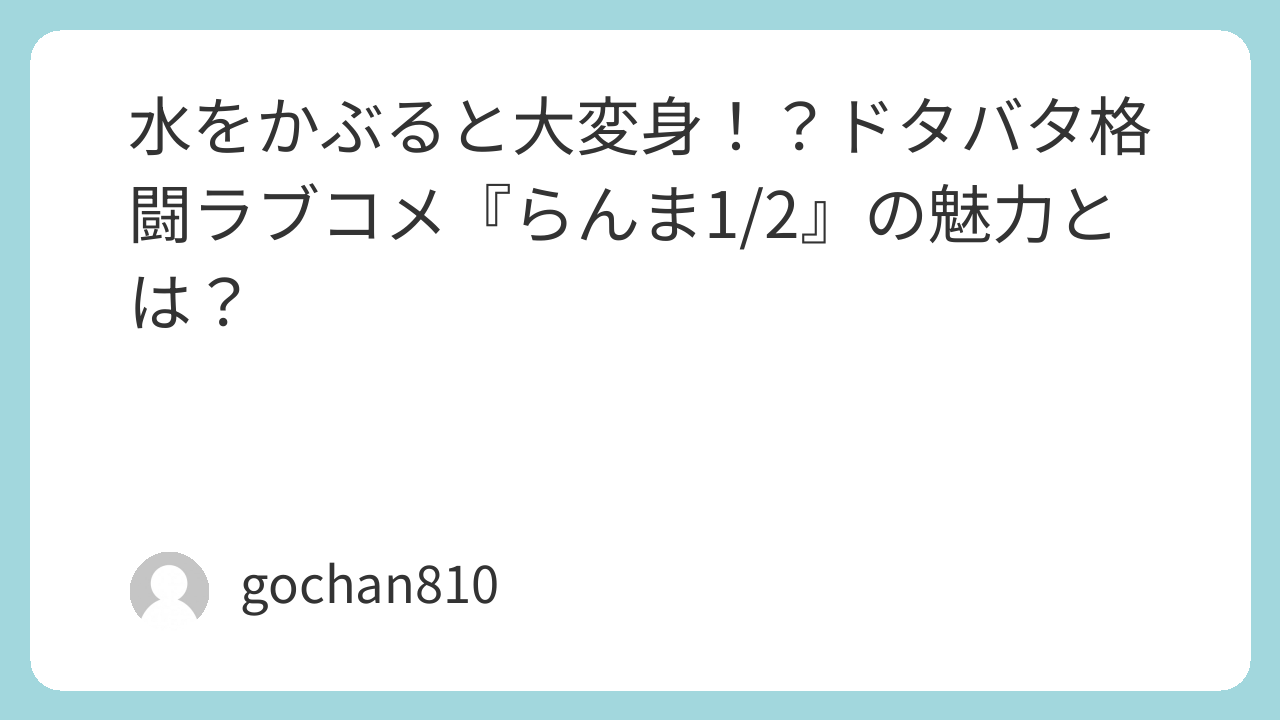 型にはまらないバトルと、その中で育まれる不器用な恋愛模様が絶妙にブレンドされた『らんま1/2』の世界。ぜひ一度、そのカオスで賑やかな世界に飛び込んでみてはいかがでしょうか?